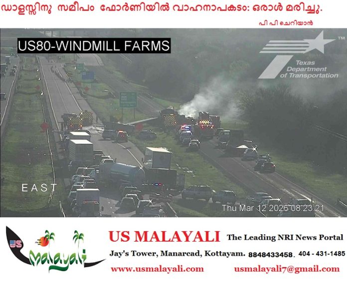 ഫോർണി: ഡാളസ്സിനു സമീപം ഫോർണി യു.എസ്. 80 ഹൈവേയിലുണ്ടായ വൻ അപകടത്തിൽ ഒരാൾ മരിച്ചു. വ്യാഴാഴ്ച രാവിലെ 7:50-ഓടെയാണ് ഒരു ലോറിയുൾപ്പെടെ (18-wheeler) നിരവധി വാഹനങ്ങൾ അപകടത്തിൽപ്പെട്ടത്.