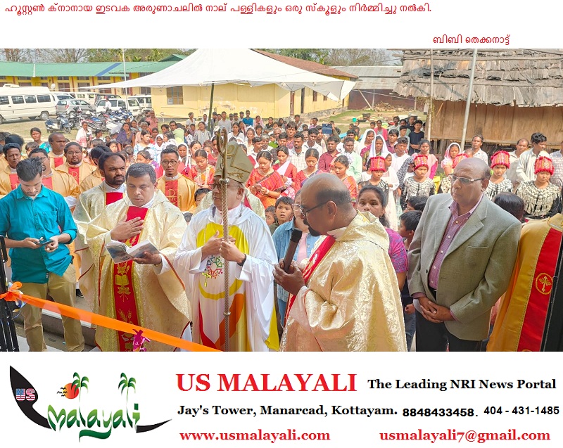 ഹൂസ്റ്റൺ: ഹൂസ്റ്റൺ സെന്റ് മേരീസ് ക്നാനായ കാത്തലിക് ഫൊറോനാ ഇടവകയുടെയും, ഈ ഇടകാംഗങ്ങളായ വിവിധ കുടുംബങ്ങളുടെയും നേതൃത്വത്തിൽ അരുണാചൽ പ്രദേശിലെ മിയാവു രൂപതയിൽ നാല് ദൈവാലയങ്ങളും ഒരു വിദ്യാലയവും നിർമ്മിച്ചു നൽകി. തിരുസഭയുടെ മഹാജൂബിലി വർഷമായ 2025-ന്റെ ഭാഗമായാണ് മിഷൻ രൂപതയെ സഹായിക്കുന്ന ഈ ബൃഹത്തായ പദ്ധതികൾ പൂർത്തിയാക്കിയത്.