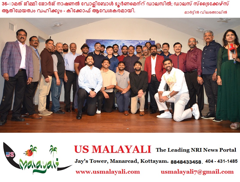ഇന്ത്യൻ വോളിബോൾ ഇതിഹാസം ജിമ്മി ജോർജിന്റെ സ്മരണാർത്ഥം സംഘടിപ്പിക്കുന്ന ഈ ടൂർണമെന്റ്, ഡാലസിലെ വോളിബോൾ പ്രേമികൾക്ക് പുത്തൻ ആവേശം പകരുമെന്ന് സംഘാടകർ പ്രത്യാശ പ്രകടിപ്പിച്ചു.