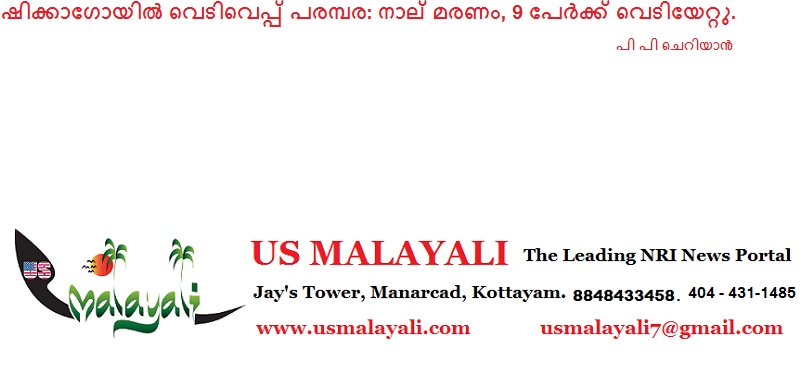 ഷിക്കാഗോ:അമേരിക്കയിലെ ഷിക്കാഗോയിൽ ശനിയാഴ്ച രാത്രി മുതൽ ഞായറാഴ്ച പുലർച്ചെ വരെ വിവിധ ഇടങ്ങളിലായി നടന്ന വെടിവെപ്പുകളിൽ നാല് പേർ കൊല്ലപ്പെട്ടു. മൊത്തം ഒമ്പത് പേർക്കാണ് വെടിയേറ്റതെന്ന് ഷിക്കാഗോ പോലീസ് അറിയിച്ചു. 28 വയസ്സു മുതൽ 43 വയസ്സു വരെയുള്ളവരാണ് ആക്രമണത്തിന് ഇരയായത്.