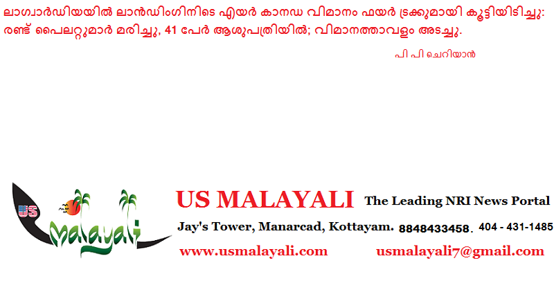 ന്യൂയോർക്ക് (മാർച്ച് 23, 2026): ന്യൂയോർക്കിലെ ലാഗ്വാർഡിയ വിമാനത്താവളത്തിൽ എയർ കാനഡ വിമാനം അഗ്നിശമന സേനാ ട്രക്കുമായി കൂട്ടിയിടിച്ച് വൻ ദുരന്തം. അപകടത്തിൽ വിമാനത്തിലെ രണ്ട് പൈലറ്റുമാർ കൊല്ലപ്പെട്ടു. പരിക്കേറ്റ 41 പേരെ ആശുപത്രിയിൽ പ്രവേശിപ്പിച്ചു.