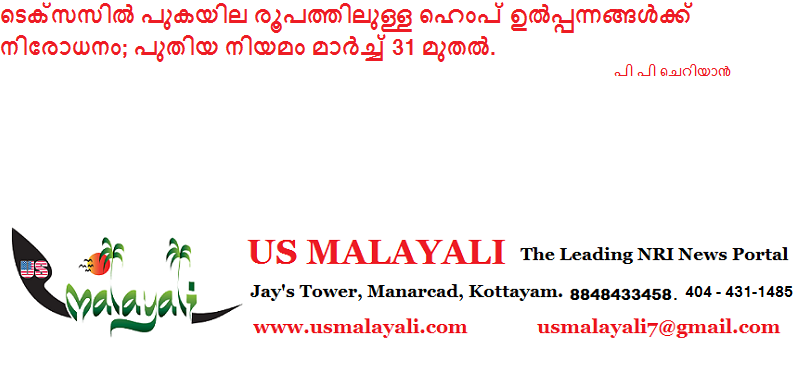 ഓസ്റ്റിൻ: ടെക്സസ് സംസ്ഥാനത്ത് പുകയ്ക്കാവുന്ന തരത്തിലുള്ള (Smokeable) ഹെംപ് ഉൽപ്പന്നങ്ങൾക്ക് മാർച്ച് 31 മുതൽ നിരോധനം ഏർപ്പെടുത്തുന്നു. സംസ്ഥാന ആരോഗ്യ വകുപ്പ് പുറപ്പെടുവിച്ച പുതിയ ഉത്തരവ് പ്രകാരം ഹെംപ് പൂവുകൾ (Hemp flowers), പ്രീ-റോൾഡ് ജോയിന്റുകൾ എന്നിവ വിൽക്കാൻ അനുവാദമുണ്ടാകില്ല.