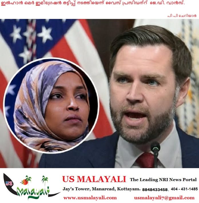 ഇൽഹാൻ ഒമറിനെതിരെ അന്വേഷണം നടത്തുന്നതിനെക്കുറിച്ചും നിയമപരമായ നടപടികൾ സ്വീകരിക്കുന്നതിനെക്കുറിച്ചും വൈറ്റ് ഹൗസ് ഡെപ്യൂട്ടി ചീഫ് ഓഫ് സ്റ്റാഫ് സ്റ്റീഫൻ മില്ലറുമായി ചർച്ച നടത്തിയതായി വാൻസ് വെളിപ്പെടുത്തി.
