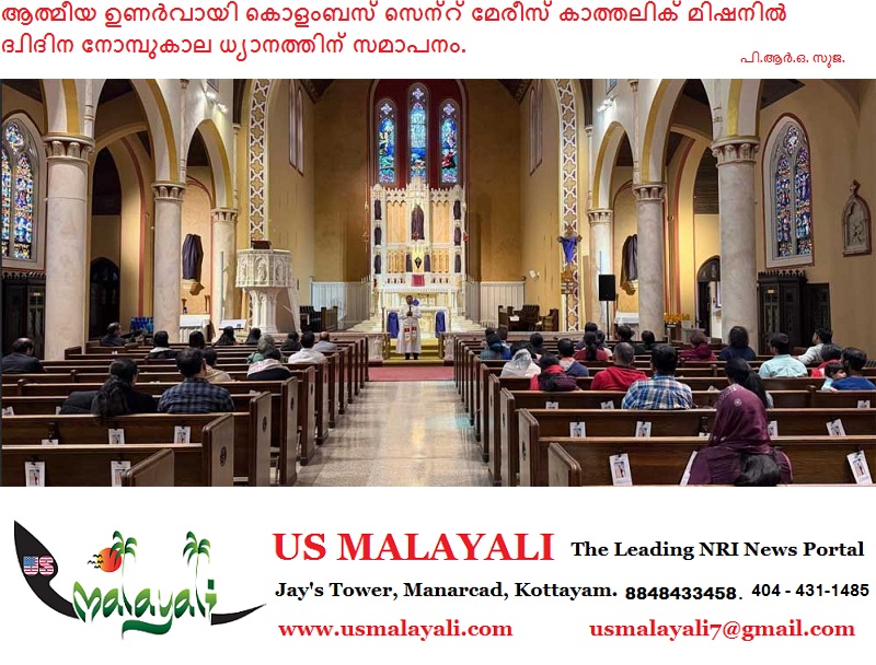 കൊളംബസ്, ഒഹായോ: പ്രത്യാശയുടെയും ദൈവകൃപയുടെയും നിറവിൽ, ഏവരും ദൈവത്തിന്റെ പ്രിയമക്കളായി ജീവിക്കണമെന്ന ഓർമ്മപ്പെടുത്തലോടെ കൊളംബസിലെ ദ്വിദിന നോമ്പുകാല ധ്യാനത്തിന് സമാപനം. *ഫാ. നിബി കണ്ണായിയുടെ* പ്രത്യേക മാർഗ്ഗനിർദ്ദേശത്തിലും നേതൃത്വത്തിലുമാണ് മിഷനിൽ ഈ ആത്മീയ വിരുന്ന് സംഘടിപ്പിച്ചത്. *ഫാ. കുര്യൻ മുക്കംകുഴിയിൽ* നയിച്ച ധ്യാനം വിശ്വാസികൾക്ക് വലിയ ആത്മീയ അനുഗ്രഹമായി മാറി.
