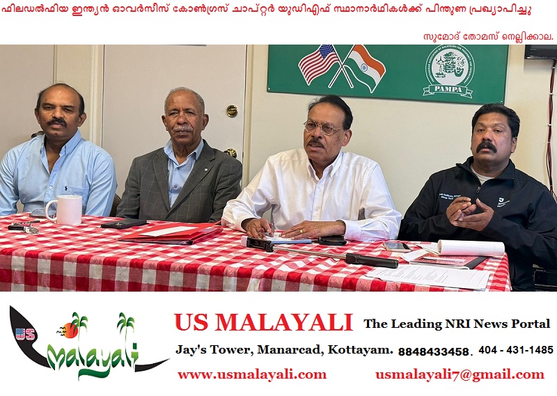 ഫിലഡൽഫിയ: അമേരിക്കയിലെ ഫിലഡൽഫിയയിൽ പ്രവർത്തിക്കുന്ന ഇന്ത്യൻ ഓവർസീസ് കോൺഗ്രസ് (IOC) ചാപ്റ്റർ കേരളത്തിലെ യുഡിഎഫ് സ്ഥാനാർഥികൾക്ക് നിസ്വാർത്ഥവും നിബന്ധനകളില്ലാത്തതുമായ സാമ്പത്തികവും മറ്റ് സഹായങ്ങളും നൽകാൻ തീരുമാനിച്ചു. ചാപ്റ്റർ പ്രസിഡന്റ് ഡോ. ഈപ്പൻ ഡാനിയലിന്റെ അധ്യക്ഷതയിൽ ചേർന്ന യോഗത്തിലാണ് ഈ നിർണായക തീരുമാനം കൈക്കൊണ്ടത്.