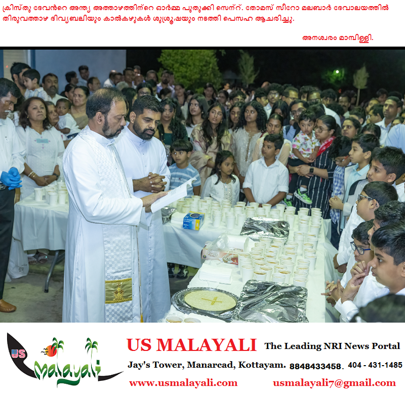 ഗാർലന്റ് : ക്രിസ്തുദേവന്റെ അന്ത്യ അത്താഴത്തിന്റെ സ്മരണ പുതുക്കി കൊണ്ടു ഗാർലൻറ് സെന്റ്. തോമസ് സീറോ മലബാർ ദേവാലയത്തിലെ വിശ്വാസികൾ പെസഹ വ്യാഴം ആചരിച്ചു. ദേവാലയത്തിൽ വ്യാഴാഴ്ച വൈകീട്ട് 7 മണിക്ക് വിശുദ്ധ കുർബാനയും തുടർന്ന് തിരുവത്താഴ ദിവ്യബലിയും കാൽകഴുകൽ ശുശ്രൂഷാച്ചടങ്ങും നടത്തി. വികാരി ഫാ. സിബി സെബാസ്റ്റ്യൻ കൊച്ചീറ്റതോട്ട്, ഫാ. ക്രിസ്റ്റീൻ പുതിയ കുന്നേൽ എന്നിവർ നേതൃത്വം നൽകി. കുരിശുമരണം വരിക്കുന്നതിനുമുൻപ് യേശു തന്റെ 12 ശിഷ്യന്മാരോടൊപ്പം അന്ത്യ അത്താഴം കഴിച്ചതും, വിശുദ്ധ കുർബാന എന്ന കൂദാശ സ്ഥാപിച്ചതും അനുസ്മരിച്ചാണ് ലോക ക്രൈസ്തവ സമൂഹം അനുഷ്ഠാനങ്ങളോടെ പെസഹ ആചരിക്കുന്നത്.