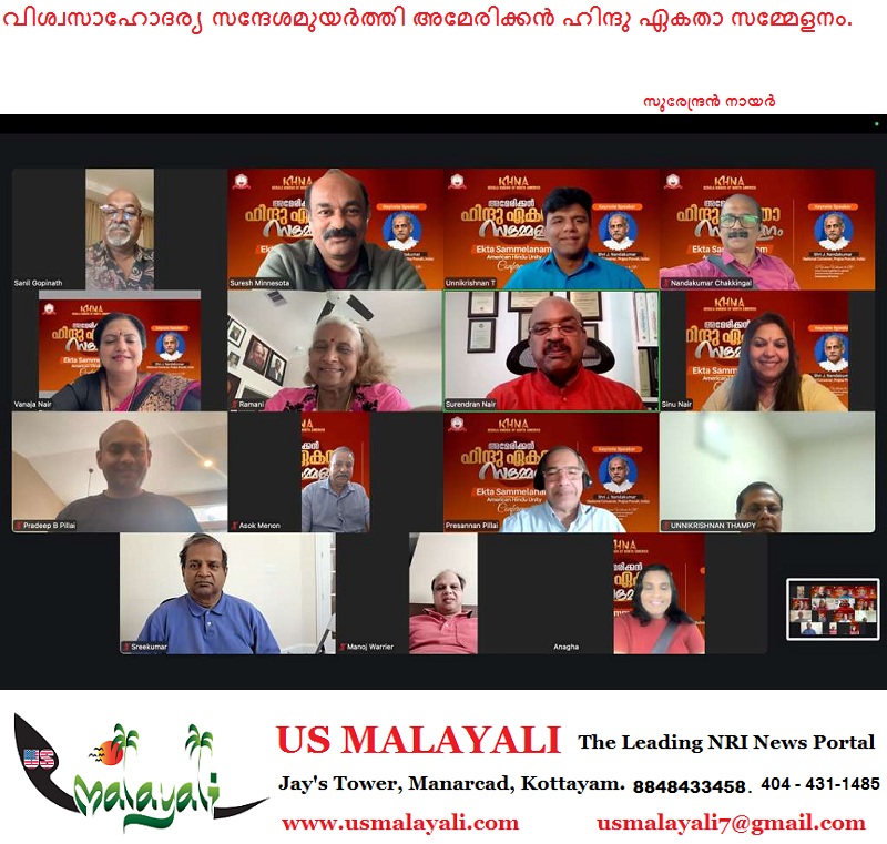 ഭാരതത്തിൽ ആരംഭിച്ച് ലോകമെമ്പാടും വ്യാപിച്ചു കൊണ്ടിരിക്കുന്ന ഹൈന്ദവ ഐക്യ പ്രസ്ഥാനത്തിന്റെ ഭാഗമായി, Kerala Hindus of North America (KHNA) ഓൺലൈൻ മുഖേന സംഘടിപ്പിച്ച അമേരിക്കൻ ഹിന്ദു ഏകതാ സമ്മേളനം, അൻപതിലധികം ഹിന്ദു കൂട്ടായ്മകളുടെ സാന്നിധ്യം കൊണ്ട് ശ്രദ്ധേയമായി.