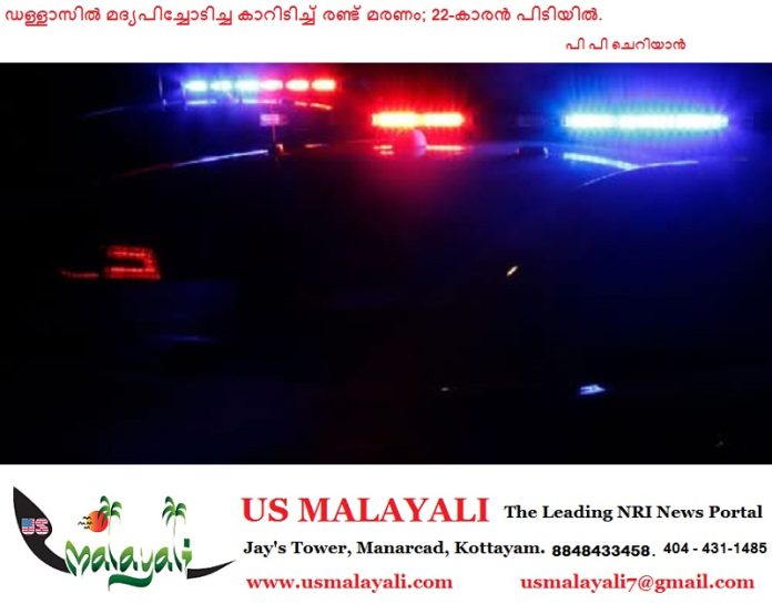 ഡള്ളാസ്: മദ്യപിച്ച് വാഹനമോടിച്ച യുവാവ് മറ്റൊരു കാറിലിടിച്ച് ഉണ്ടായ അപകടത്തിൽ രണ്ട് പേർ മരിച്ചു. ഏപ്രിൽ 5-ന് പുലർച്ചെ ഡള്ളാസിലെ ബക്നർ ടെറസ് മേഖലയിലാണ് സംഭവം.