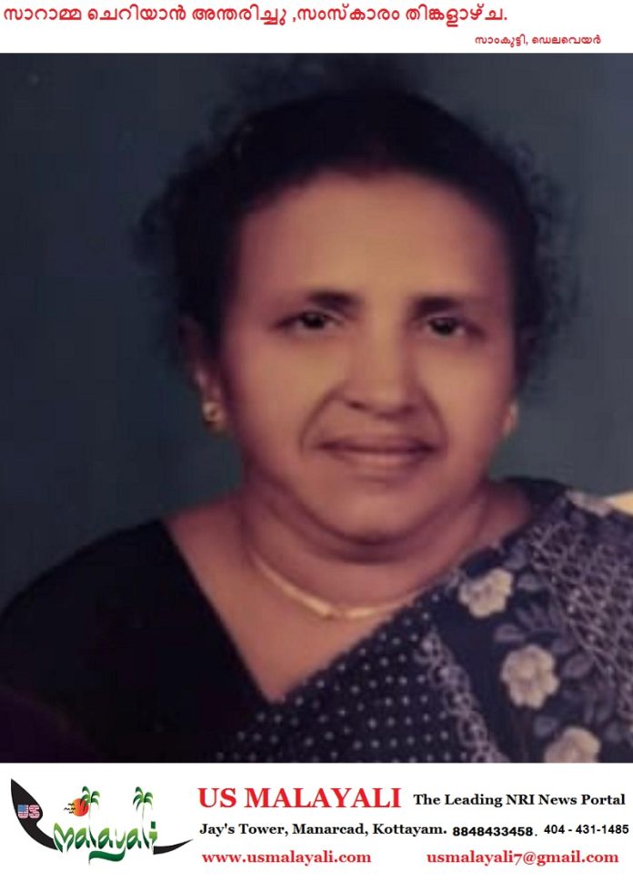 പത്തനാപുരം: പിടവൂർ വേങ്ങൽ മണപ്പുറത്ത് സാറാമ്മ ചെറിയാൻ (88) അന്തരിച്ചു. പരേത മാവേലിക്കര ഷോപ്പിൽ പീടികയിൽ കുടുംബാംഗമാണ്.